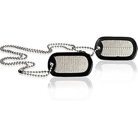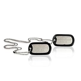 Dog Tag Kette matt, mit 2 unterschiedlichen geprägten original US Dog Tags nach Kundenwunsch. Die Erkennungsmarken mit eigener Gravur werden inklusive 2 Ketten und 2 Silencer geliefert.