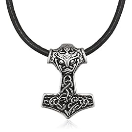 DonDon Herren Halskette Leder 50 cm und Anhänger Thor Hammer aus Edelstahl verpackt in einem schwarzen Samtbeutel