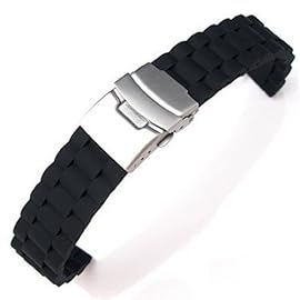 Schwarz Silikon wasserdichte Taucheruhr Band Band Faltschließe 18mm