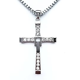 HS86 Kreuz Kette aus Edelstahl Halskette in Silber Anhänger Strass Geschenk Groß