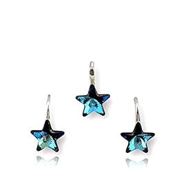 Crystals & Stones *STERN* *Bermuda Blue* Mädchen Schmuck Set *Schön Schmuckset mit Kristallen von Swarovski Elements – Wunderbare Ohrringe und Halskette mit Geschenkbox