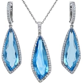 Citerna Damen-SchmuckSet Ohrringe HalsketteSterlingSilber 925 Blautopas Zirkonia 46 cm SET1307 BT E