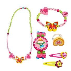 Bino 4 TLG. Set Holzschmuck Mädchenschmuck Kinderschmuck Motiv Schmetterling Gelb – Halskette Armband Armbanduhr + 1 Zufallsring