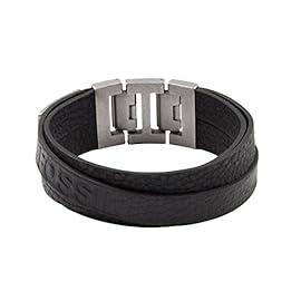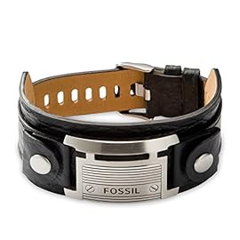 Fossil große schwarze ID-Manschette Armband aus Leder, JF84816040 Länge: 242mm, Breite ID: 29mm