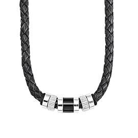 s.Oliver Halsband Edelstahl Leder Herren Halsschmuck, 45+3 cm, Schwarz, Kommt in Schmuck Geschenk Box, 9066681