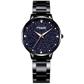 Alienwork Armbanduhr Damen schwarz Edelstahl Metallarmband echtes Marmor Zifferblatt