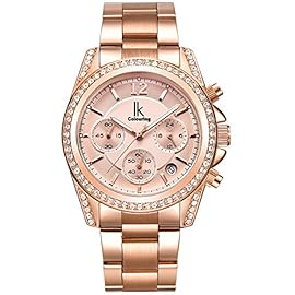 Alienwork Armbanduhr Damen Rose-Gold Edelstahl Metallarmband Kalender Datum Multi-Funktion