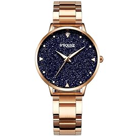 Alienwork Armbanduhr Damen Rose-Gold Edelstahl Metallarmband schwarz echtes Marmor Zifferblatt