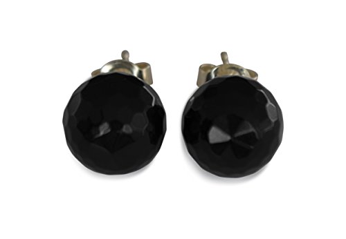 Achat Ohrstecker, natürlich, schwarz, rund, facettiert, 10mm, 925 Silber