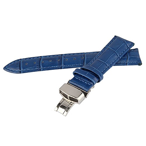 Beauty7 Unisex Echtleder Uhrenarmband 14mm Breit mit Silber Faltschließe WBL35-43BD14b