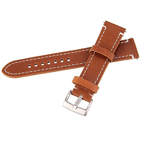 Beauty7 Unisex Echtleder Uhrenarmband Schwarz mit Weißer Naht Silber Dornschließe WBL00080BDa