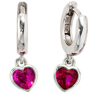 1 Paar Creolen mit Klappmechanik „Herz“ aus 925 Sterlingsilber, rhodiniert