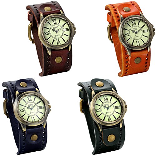 JewelryWe Damen Armbanduhr Vintage Casual Analog Quarz Leder Band Uhr mit römischen Ziffern Zifferblatt